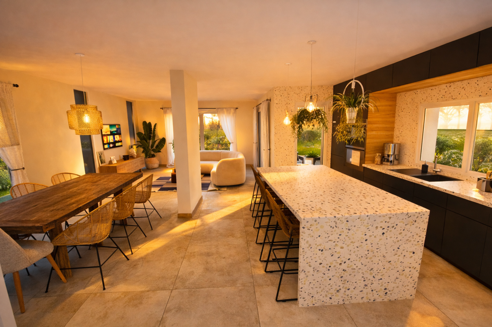 Très belles prestations générales : chauffage au sol pompe à chaleur, tous les stores électriques avec la porte de garage, pack domotique, wc suspendu, faïences toute hauteur, etc, classe énergétique excellent.