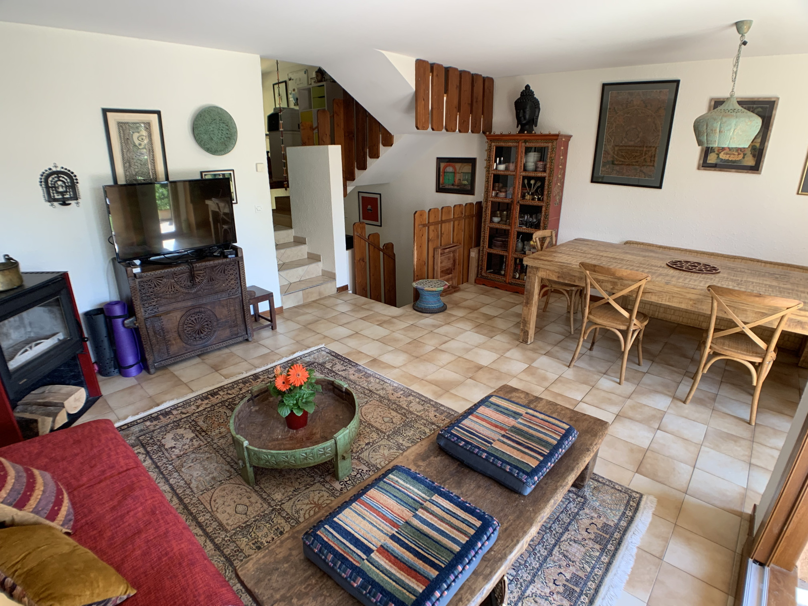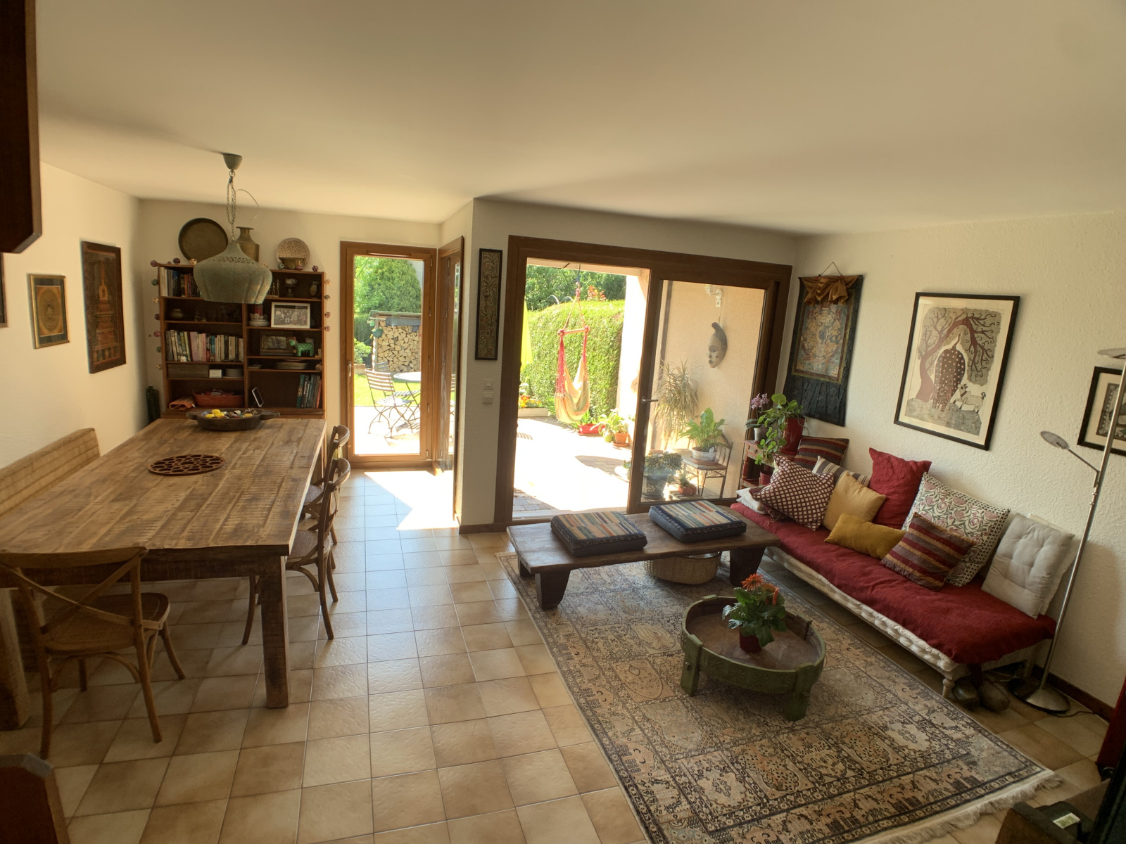 EXCLUSIVITE, uniquement chez MATESA IMMO, rare à la vente à Prévessin-Moens (01280), très proche de Ferney-Voltaire, charmante maison mitoyenne d'un côté uniquement avec sous sol et, comprenant AU RDC : une entrée, un wc visiteur avec lave main, une buanderie, un lumineux salon séjour avec poele à bois et accès terrasse et jardin exposé plein sud, une vaste cuisine équipée avec salle à manger, à l'ETAGE : un bureau, 4 chambres, un salle de bain, un wc séparé. Au sous-sol : un garage, une grande cave avec rangement. Maison en parfait état, fenêtres récentes. Très joli vue Alpes et Mont Blanc. Environnement résidentiel et calme. Grands espaces verts avec le lotissement. Rare à la vente. Toutes commodités à pied, bus pour genève, écoles et commerces. MATESA IMMO, agence immobilière pays de gex, vente achat maison Prévessin-Moens 01280