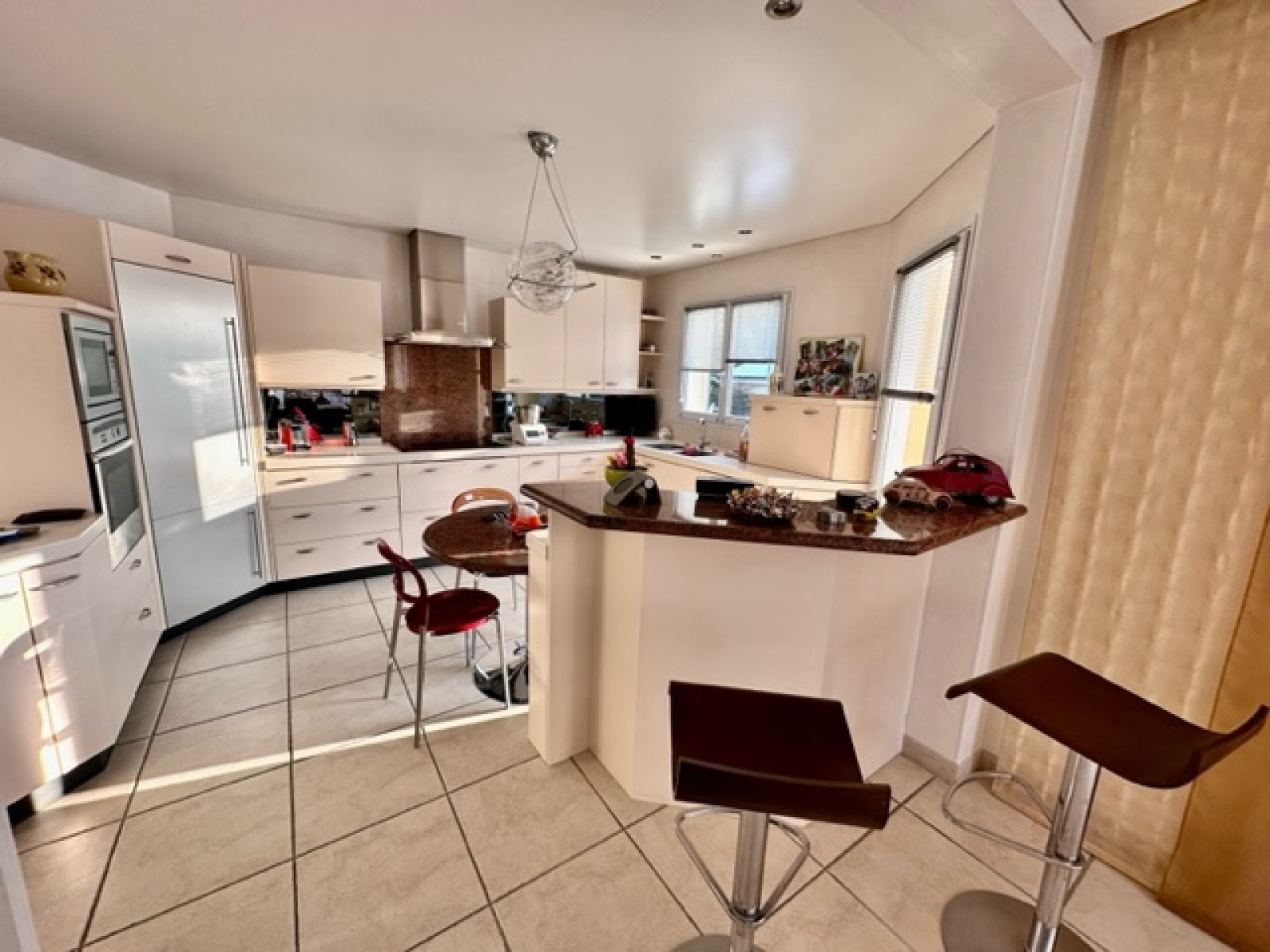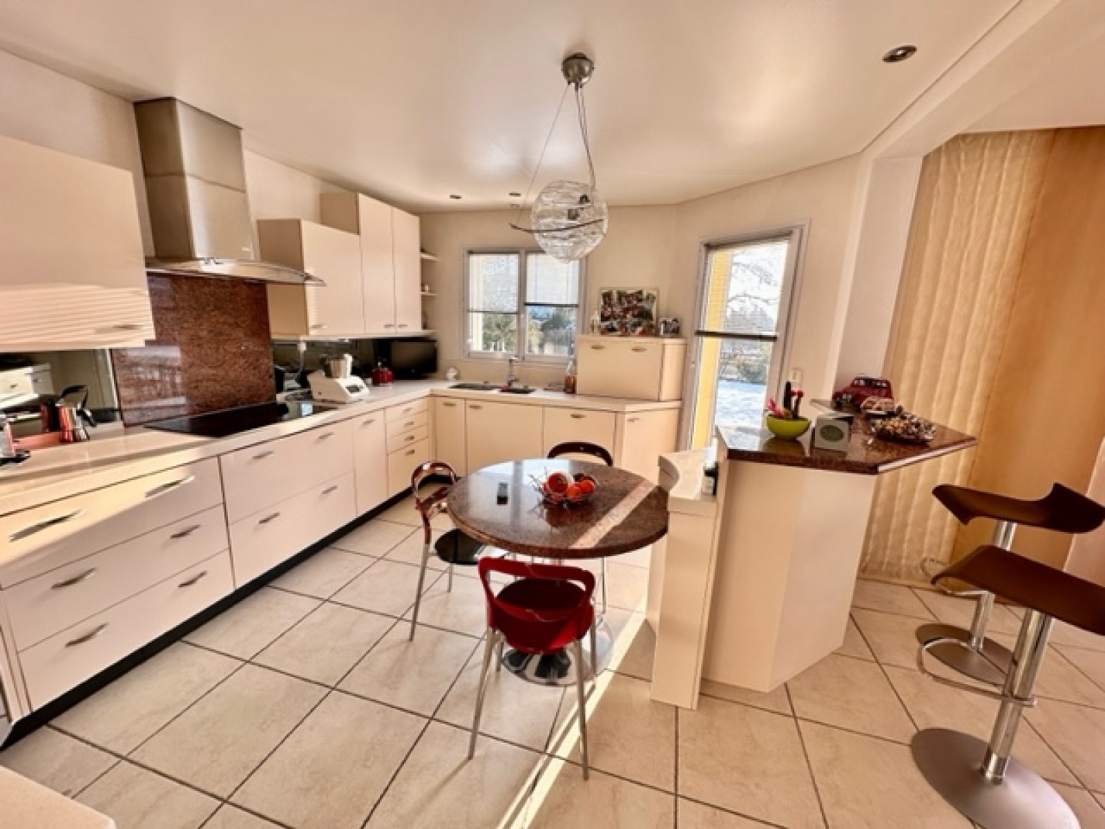 Matesa immobilier est heureux de vous présenter en EXCLUSIVITE, une des villas les plus désirée de la commune de Prevessin-Moens 01280, pour son emplacement exceptionnel, sa qualité de construction (Maison GIRAUD), ses volumes et la superficie de son terrain. Elle est composée comme suit : au rez-de-chaussée : vaste entrée, une cuisine entièrement équipée ouverte sur l’espace de vie avec salle à manger, séjour salon avec poêle à bois – le tout donnant accès à la terrasse et au jardin d’une superficie de 1900m² exposé plein sud et ouest, une grande chambre avec placard, une salle de bain avec wc, un cellier, une buanderie, un garage double. A l’étage : une mezzanine – espace lecture et télévision, trois grandes chambres dont une suite parentale avec un dressing et un balcon, une grande salle de bain avec une douche et wc, un autre wc séparé. En annexe : un studio indépendant avec cuisine équipée salon séjour salle de douche. Au sous-sol : un bel espace de rangement, cave, atelier. Plusieurs places de parking. Il s’agit d’un bien exceptionnel, rare à la vente, à deux pas de toutes les commodités (écoles, bus, commerces)