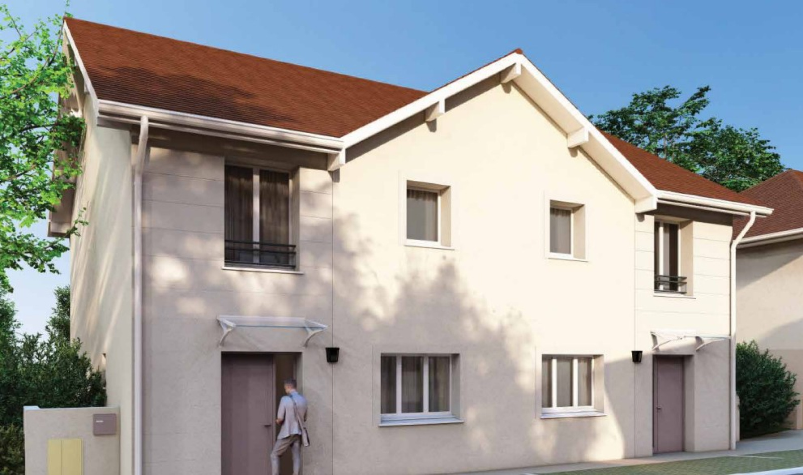 Maison mitoyenne T4 101 m2 en retrait de la rue centrale et parfaitement intégré dans son environnement existant.