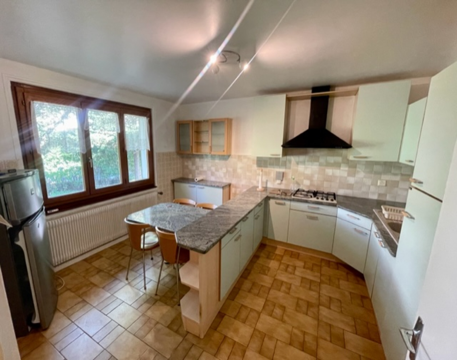 Chevry 01170, idéalement située au cœur du village, proche de toutes les commodités (écoles, boulangerie, poste), maison individuelle construite en 1968 et d’une surface d’environ 190m² sur un grand et beau terrain de 2156m². Elle est composée au rez-de-chaussée : d’une entrée, une cuisine équipée séparée, un salon-séjour avec poêle à bois donnant accès au balcon, deux chambres dont l’une avec placard et accès à un véranda, une salle de douche et un WC séparé. A l’étage : deux chambres, un bureau et une salle de bain, un wc. Au sous-sol : un garage double, deux pièces, une buanderie – chaufferie. A l’extérieur : un portail électrique, deux places de stationnements dont une couverte avec un abri voiture et une cave en dessous. Environnement champêtre et calme. Prévoir travaux de rénovation. A VISITER RAPIDEMENT ! Matesa immobilier, agence immobilière Pays de Gex, Vente maison Chevry 01170 “Les informations sur les risques auxquels ce bien est exposé sont disponibles sur le site Géorisques http://www.georisques.gouv.fr”.