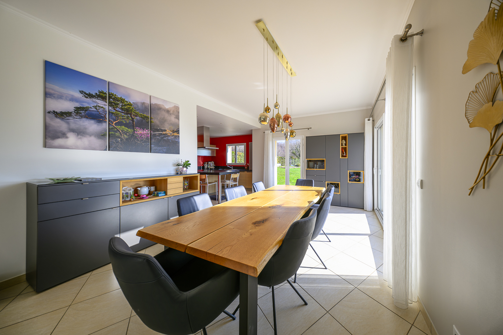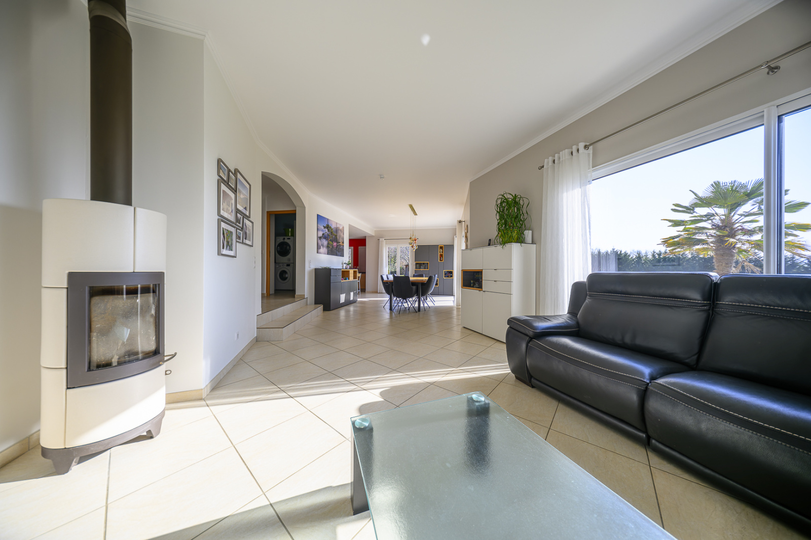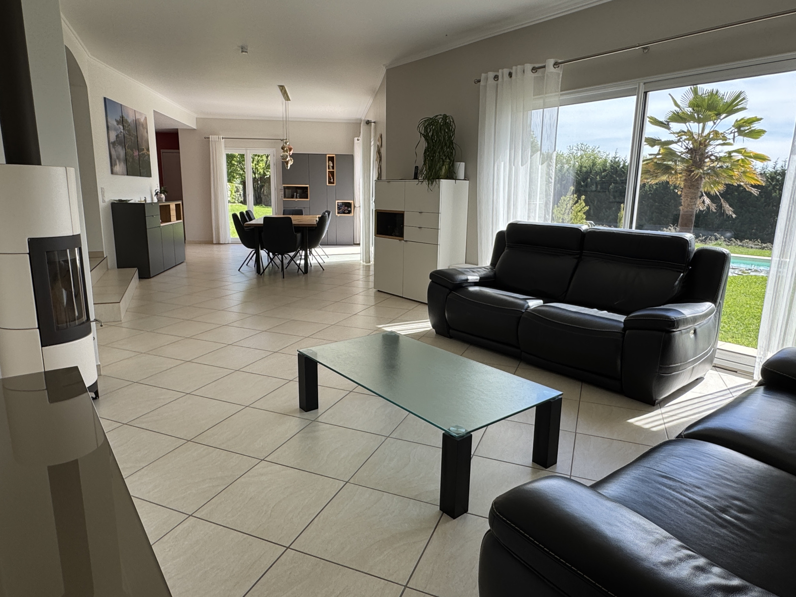 Dès l’entrée, on retrouve la signature d’une construction de qualité : une atmosphère soignée, une circulation fluide et une vraie sensation de confort. Les pièces de vie s’ouvrent largement sur l’extérieur et créent une continuité naturelle vers la terrasse, le jardin et l’espace piscine, idéale pour profiter des beaux jours et recevoir. Une cuisine semi ouverte entièrement équipée de grande qualité, la salle à manger, le salon – séjour avec un poêle à bois très lumineux et spacieux avec une belle hauteur de plafond. Une chambre, une salle de douche avec wc et une belle buanderie avec rangement et un grand garage communicant.
