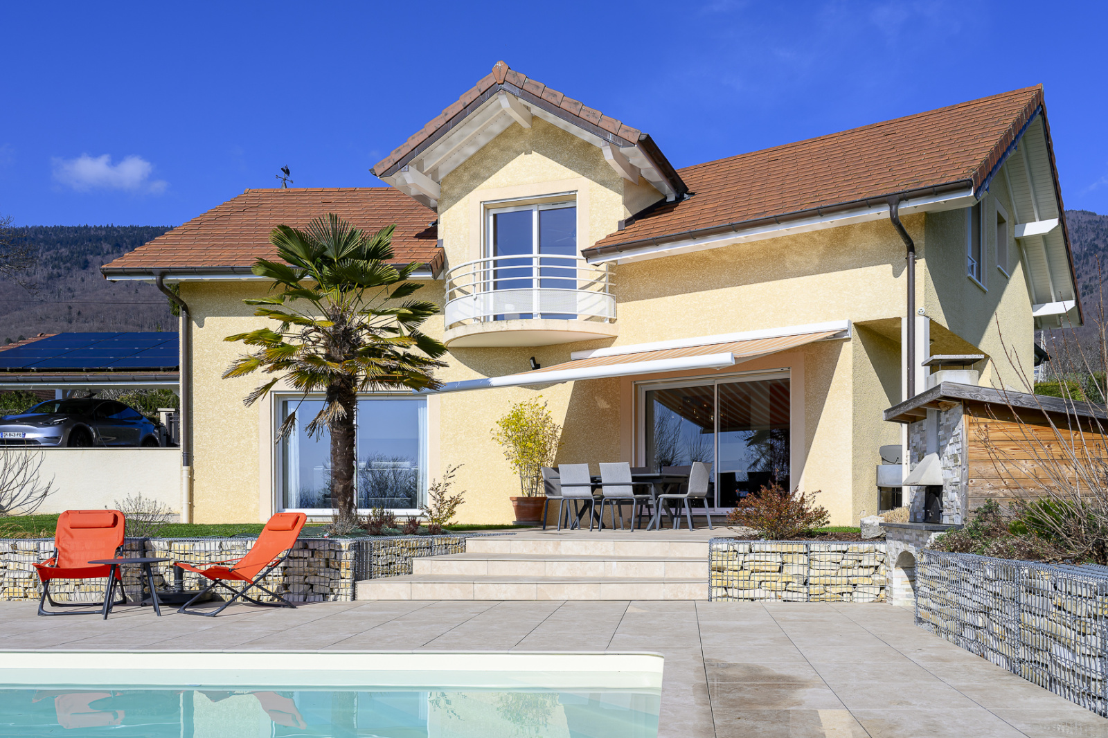 Péron, Villa aux prestations haut de gamme, piscine & parcelle 1748 m² — 5 chambres — Sous-sol complet — PAC — Péron (01630)