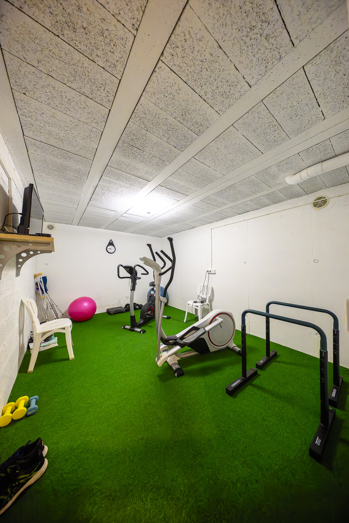La villa bénéficie d’un sous-sol complet avec espace de détente et d’utilité : sauna, salle de sport et cave à vin, grande cave.