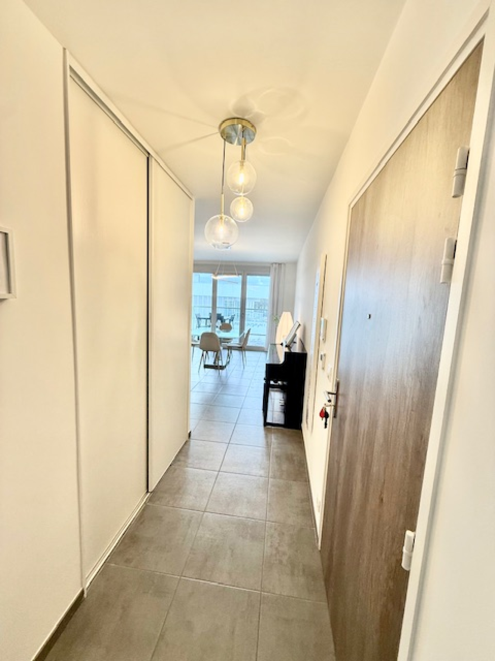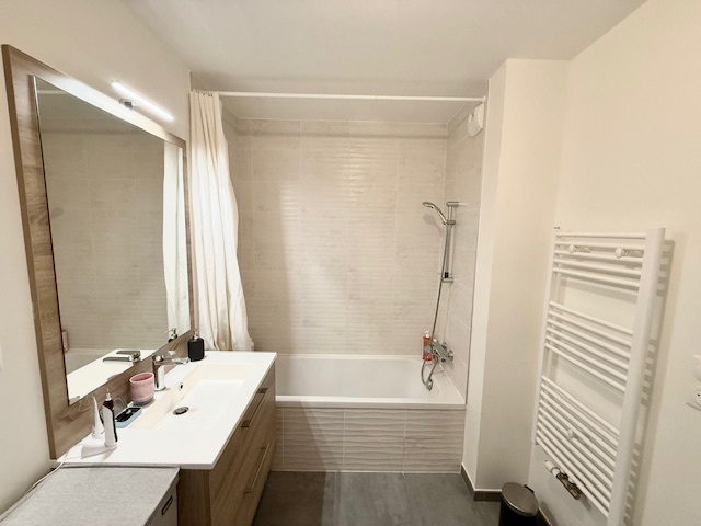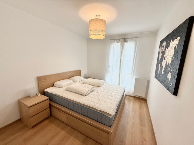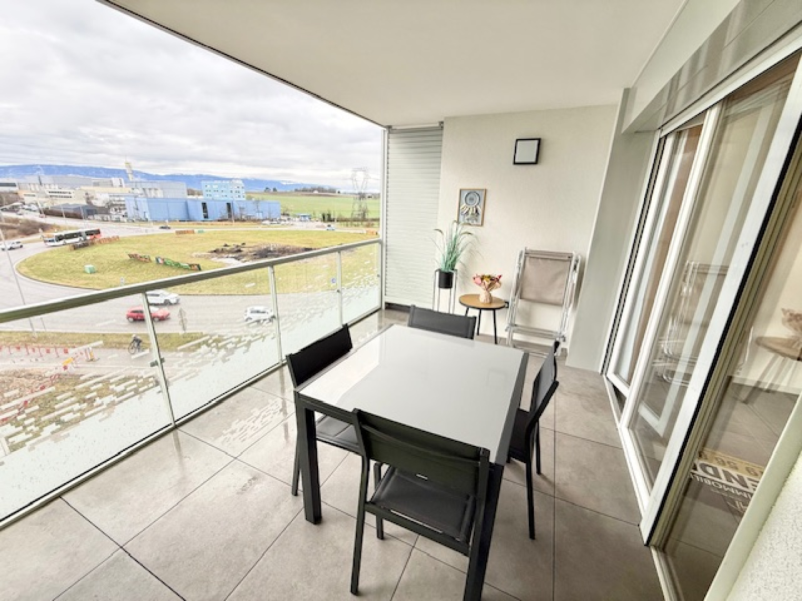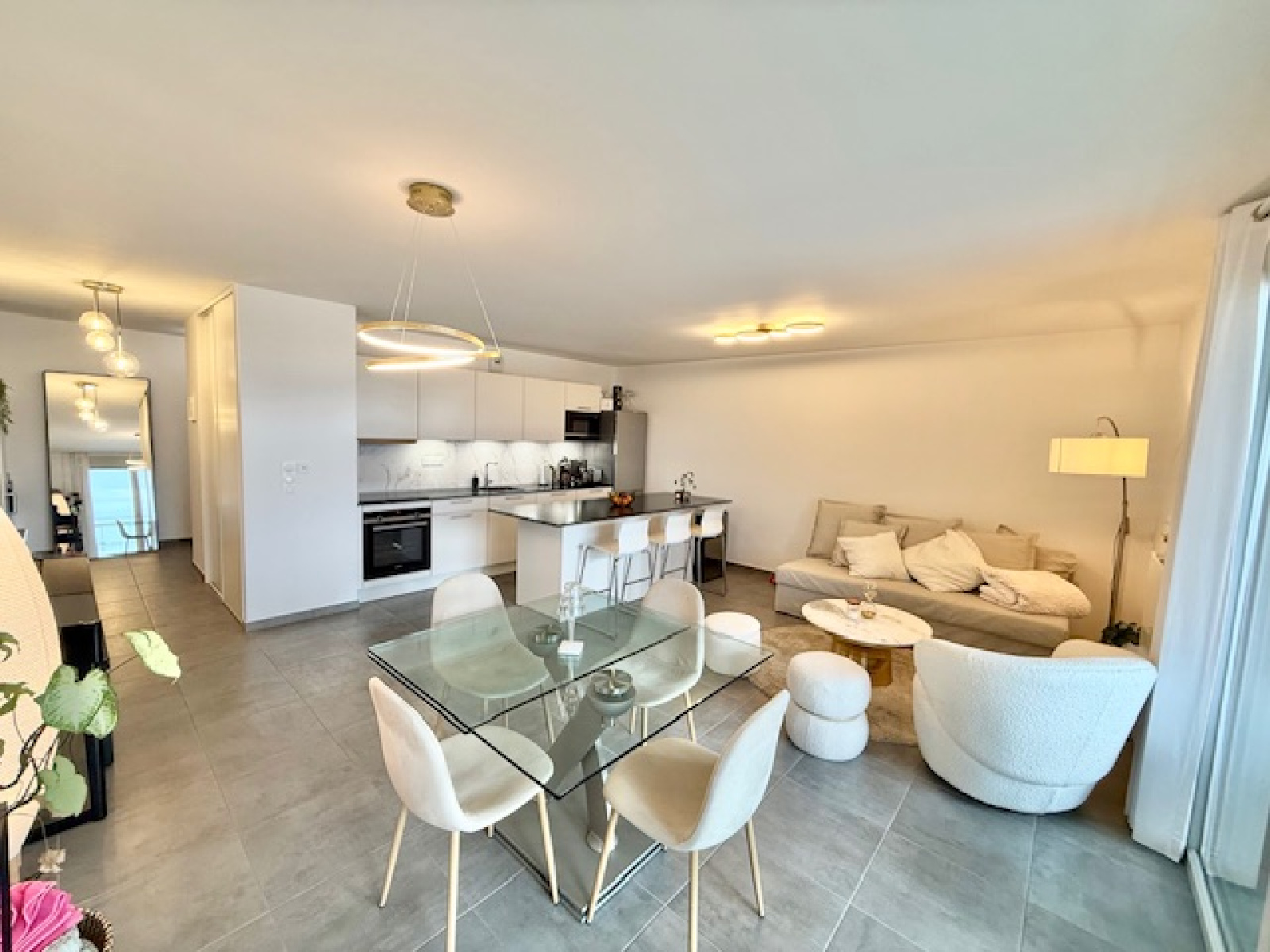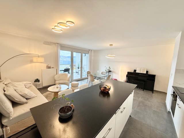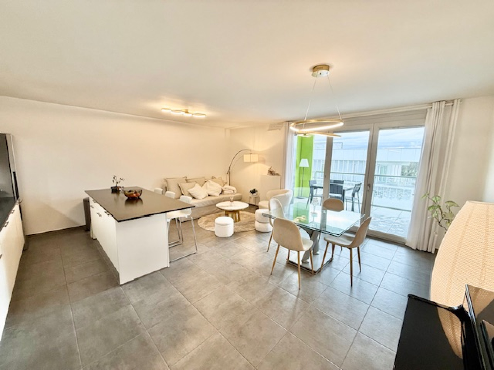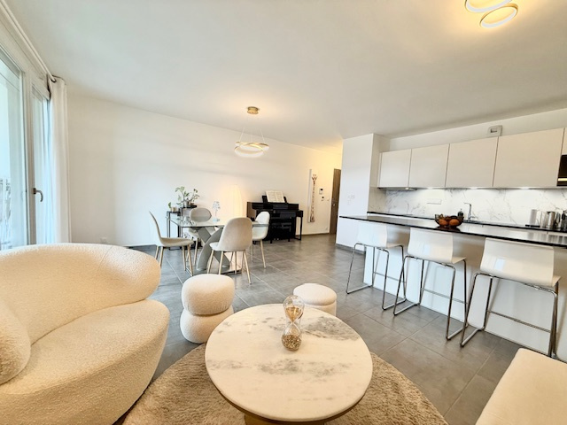 Exclusivité agence Matesa immobilier, SAINT GENIS POUILLY 01630, dans le nouveau quartier dynamique avec la maison médicale, le bus pour Genève, commerces-restaurant et piscine, nous vous proposons ce charmant appartement type T3 (2 CHAMBRES) traversant de 71m² situé au 4ième étage avec terrasse et vue sur les Alpes. Il comprenant : une entrée avec une penderie, une pièce de vie lumineuse avec la cuisine entièrement équipée de qualité avec ilot et ouverte sur le salon-séjour-salle à manger donnant accès à la terrasse avec rangement et avec une magnifique vue sur le Jura (soleil couchant), un dégagement desservant le wc visiteur avec meuble lave-main et rangement, deux chambres, une salle de bain avec emplacement machine à laver. L’appartement est en parfait état, lumineux et très agréable. En annexe au sous-sol : un garage double fermé. Classe énergie C. A VISITER RAPIDEMENT ! Matesa Immobilier, agence immobilière indépendante du Pays de Gex, vente et achat appartement Saint Genis Pouilly 01630 "Les informations sur les risques auxquels ce bien est exposé sont disponibles sur le site Géorisques http://www:georisques.gouv.fr"